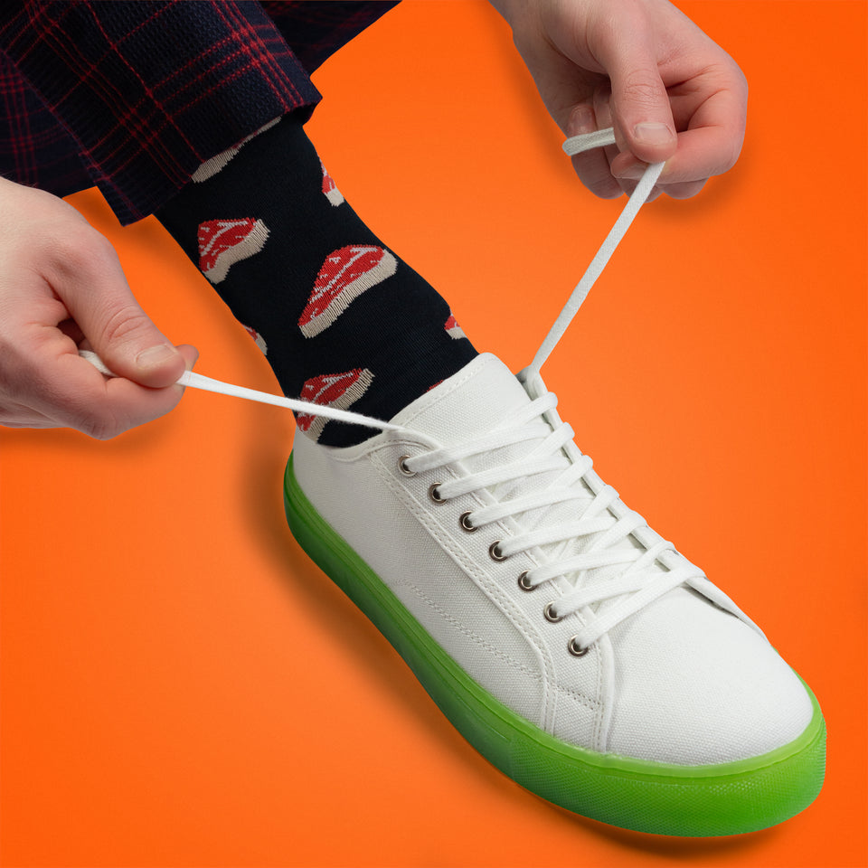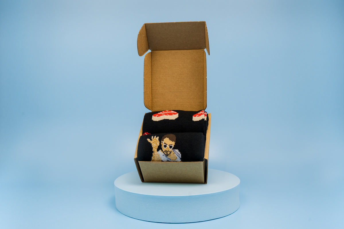Dress your feet in faves from the kitchen and social media scenes with two tasty designs. It's all about wearing the right socks (and the left ones, too 😉).